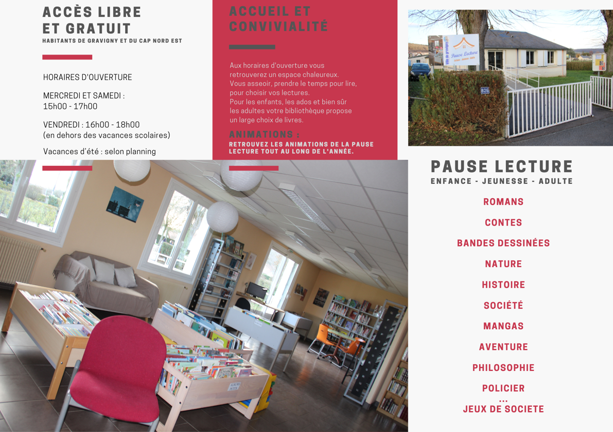 PAUSE LECTURE est une bibliothèque communale destinée aux Gravignais.es. La Municipalité a également souhaité ouvrir son accès aux habitants du territoire du Cap Nord Est.