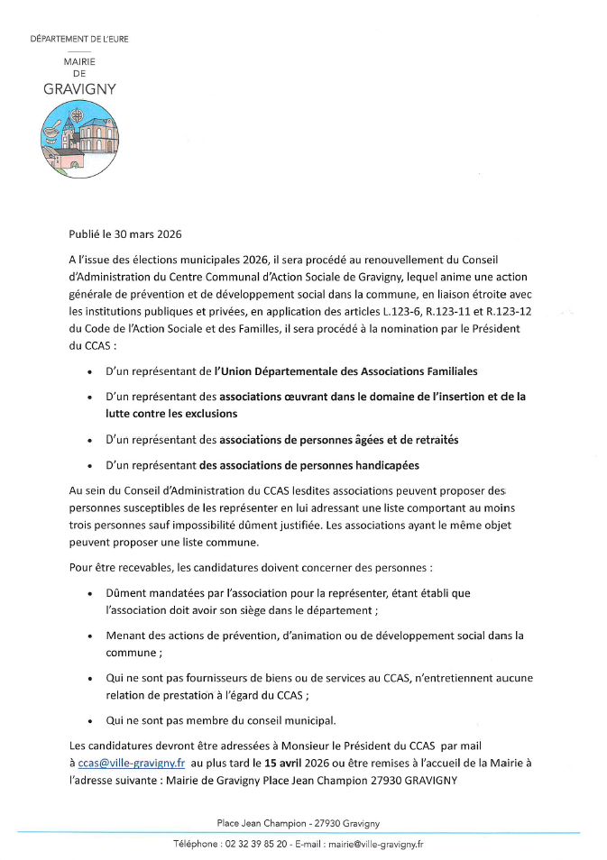 Renouvellement du Conseil d'Administration CCAS 2026